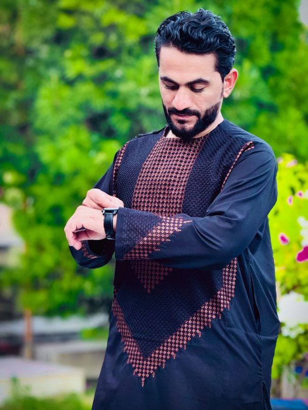 The Herati suit is distinguished by its unique embroidery patterns inspired by the city of Herat’s rich artistry. Crafted with premium cotton blend and detailed stitching on the chest and cuffs, this attire represents Afghan elegance at its finest. Perfect for special occasions or cultural celebrations.