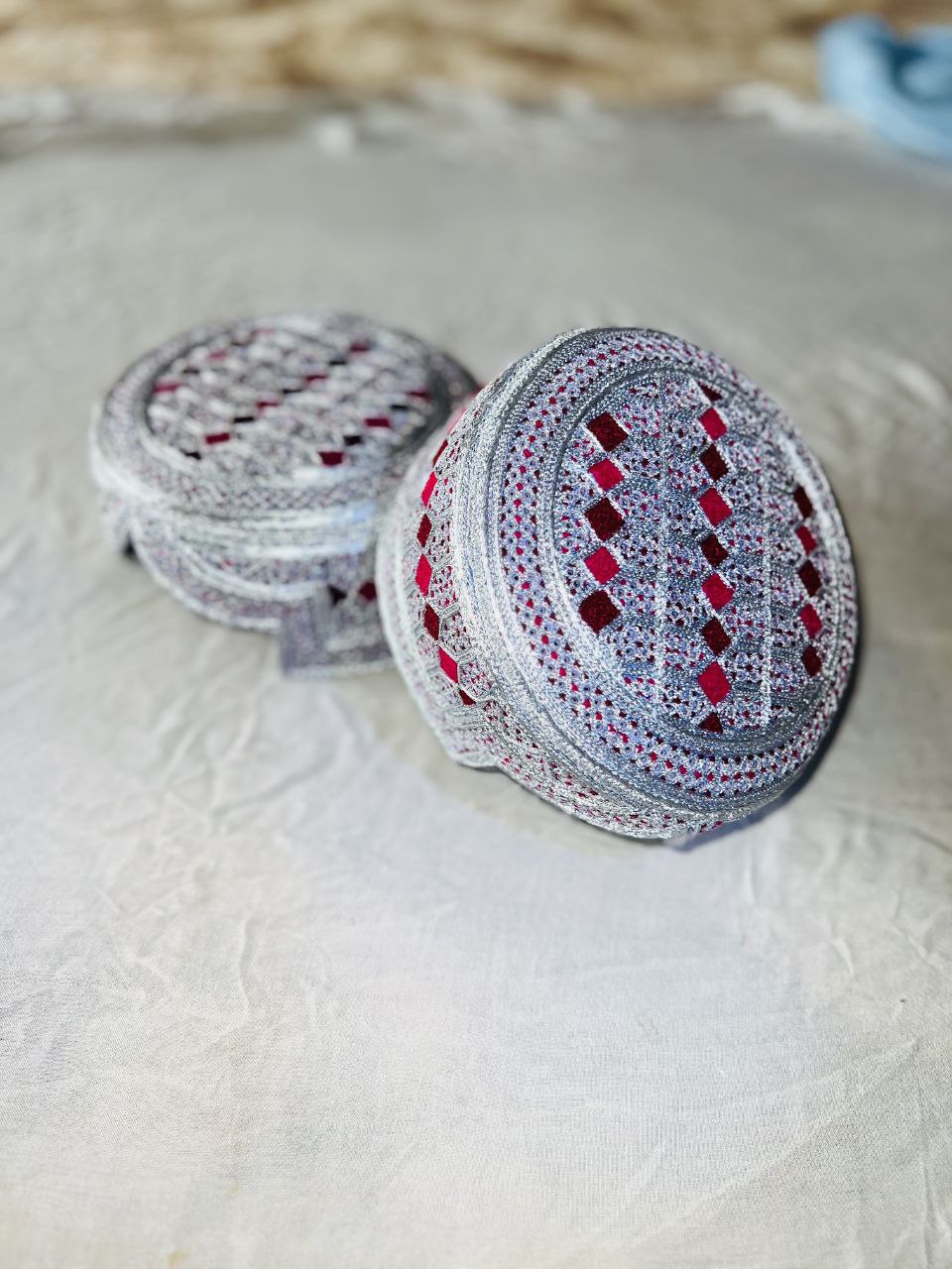 The iconic Kandhari Pakol is a round, soft woolen hat traditionally worn in southern Afghanistan. Known for its warmth and comfort, it adds an authentic Afghan touch to any outfit. Handcrafted from durable wool, this hat is a must-have accessory.